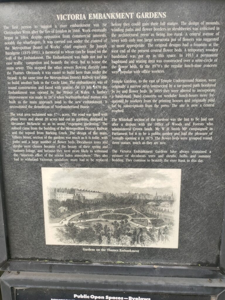 Further information: https://en.wikipedia.org/wiki/Victoria_Embankment_Gardens